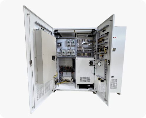 制御回路と操作表示回路をそれぞれの負荷ごとにユニット単位で標準化しているため省配線化を実現し、容量変更・更新作業も容易となっております。