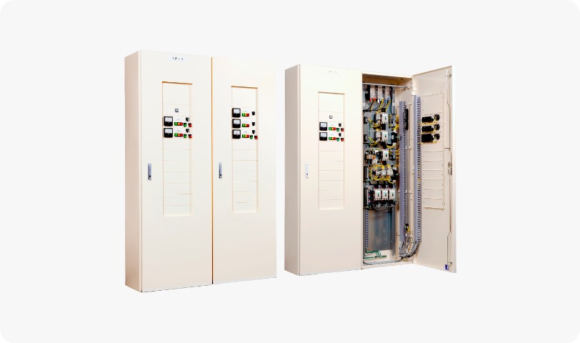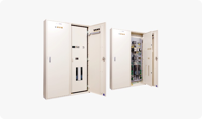 機能により高低圧配電盤、制御盤、分電盤等に区分されますが、多くの場合、それら一式を配電制御設備として受注しています。