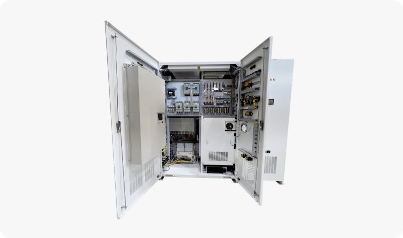 配電盤からの電気をモーターやポンプの発停及び制御に利用します。
